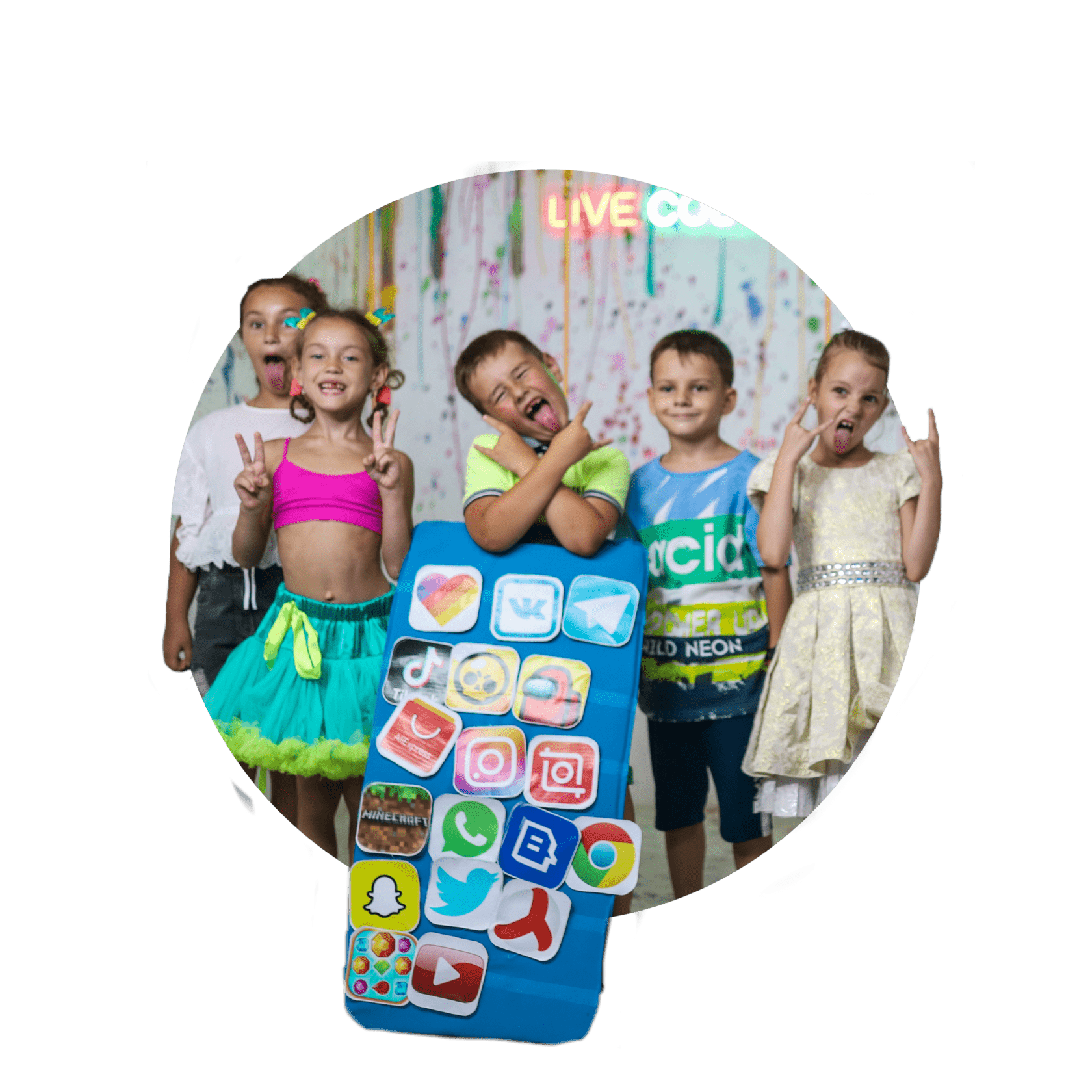 Для Вас мы разработали уникальную шоу программу с аниматором, которая представляет из себя квест по всем локациям. Программа наполнена танцами, челенджами, соревнованиями и т.д.